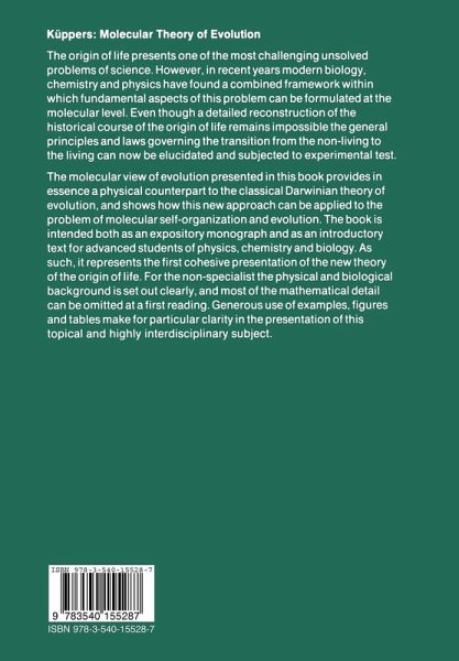 The subject of this book is the physico-chemical theory of the origin of life. Although this theory is still in statu nascendi, it has been developed in recent years to the point where a coherent presentation is possible. The book is intended as an introductory text for students of physics, chemistry or biology. This interdisciplinary aim has necessitated a choice of material based on the lowest common denominator of physicists and biologists. In particular, the predominantly mathematical and biological sections have been presented at the most elementary l.evel possible. The less mathematically inclined reader can omit Sections (5.3)-(5.5), (5.7)-(5.10), (6.2), (6.3), (9.1)-(9.3), (12.1) and (13.3) without losing the overall view. For critical reading of the manuscript, for discussions and for many useful suggestions I wish to thank M. Eigen (Gottingen), w.e. Gardiner (Austin), D. Porschke (Gottingen), P. Schuster (Vienna), P.R. Wills (Auckland) and P. Woolley (Berlin). The translation of the original, German manuscript into English was kindly undertaken by Paul Woolley. During this and subsequent stages of revision he introduced a great many improvements in the text and the presentation of material. My particular thanks are due to him for his decisive contribution to this book. Last of all I wish to thank Ingeborg Lechten for typing the text in its various stages of evolution. The completion of this book is largely to be attributed to her patience and efficiency.
