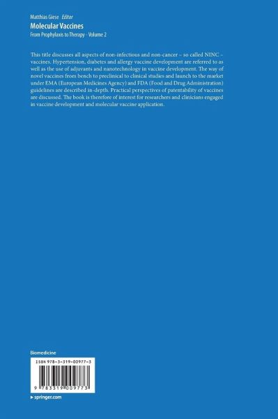 This title discusses all aspects of non-infectious and non-cancer- so called NINC - vaccines. Hypertension, diabetes and allergy vaccine development are referred to as well as the use of adjuvants and nanotechnology in vaccine development. The way of novel vaccines from bench to preclinical to clinical studies and launch to the market under EMEA (European Medicines Agency) and FDA (Food and Drug Administration) guidelines are described in-depth. The book is therefore of interest for researchers and clinicians engaged in vaccine development and molecular vaccine application.