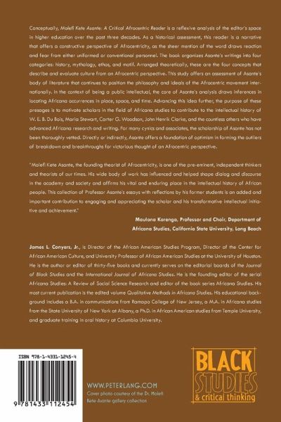 Conceptually, Molefi Kete Asante: A Critical Afrocentric Reader is a reflexive analysis of the editor's space in higher education over the past three decades. As a historical assessment, this reader is a narrative that offers a constructive perspective of Afrocentricity, as the sheer mention of the word draws reaction and fear from either uniformed or conventional personnel. The book organizes Asante's writings into four categories: history, mythology, ethos, and motif. Arranged theoretically, these are the four concepts that describe and evaluate culture from an Afrocentric perspective. This study offers an assessment of Asante's body of literature that continues to position the philosophy and ideals of the Afrocentric movement internationally. In the context of being a public intellectual, the core of Asante's analysis draws inferences in locating Africana occurrences in place, space, and time. Advancing this idea further, the purpose of these presages is to motivate scholars in the field of Africana studies to contribute to the intellectual history of W. E. B. Du Bois, Maria Stewart, Carter G. Woodson, John Henrik Clarke, and the countless others who have advanced Africana research and writing. For many cynics and associates, the scholarship of Asante has not been thoroughly vetted. Directly or indirectly, Asante offers a foundation of optimism in forming the outliers of breakdown and breakthroughs for victorious thought of an Afrocentric perspective.