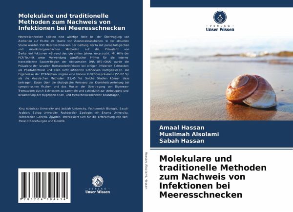 Meeresschnecken spielen eine wichtige Rolle bei der Übertragung von Zerkarien auf Fische als Quelle von Zoonosekrankheiten. In der aktuellen Studie wurden 550 Meeresschnecken der Gattung Nerita mit parasitologischen und molekulargenetischen Methoden auf die Prävalenz von Zerkarieninfektionen während des gesamten Jahres untersucht. Mit Hilfe der PCR-Technik unter Verwendung spezifischer Primer für die interne transkribierte Spacer-Region der ribosomalen DNA (ITS-rDNA) wurde die Prävalenz der larvalen Trematodeninfektion bei einigen infizierten Schnecken als Positivkontrolle und allen nicht infizierten Schnecken nachgewiesen. Die Ergebnisse der PCR-Technik zeigten eine höhere Infektionsprävalenz (55,82 %) als die klassischen Methoden (21,45 %). Solche Studien können dazu beitragen, Daten über die ökologische Relevanz der Krankheitsverteilung bei sympatrischen Fischen und das Muster der Übertragung von Digenean-Trematoden durch Schnecken zu sammeln und schließlich zur Vorbeugung undBekämpfung der folgenden Fisch- und Menschenkrankheiten beizutragen.