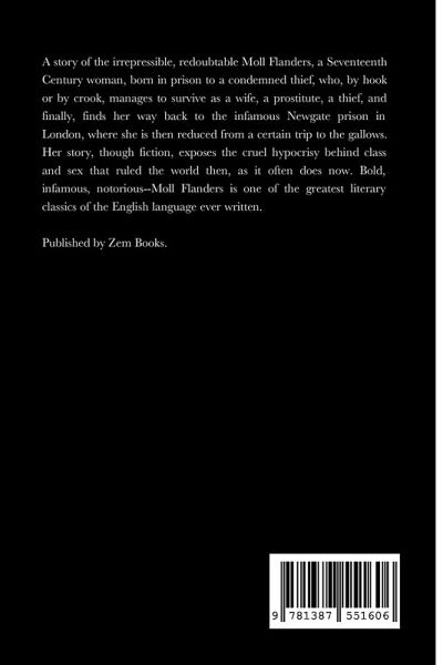 A story of the irrepressible, redoubtable Moll Flanders, a Seventeenth Century woman, born in prison to a condemned thief, who, by hook or by crook, manages to survive as a wife, a prostitute, a thief, and finally, finds her way back to the infamous Newgate prison in London, where she is then reduced from a certain trip to the gallows. Her story, though fiction, exposes the cruel hypocrisy behind class and sex that ruled the world then, as it often does now. Bold, infamous, notorious--Moll Flanders is one of the greatest literary classics of the English language ever written.