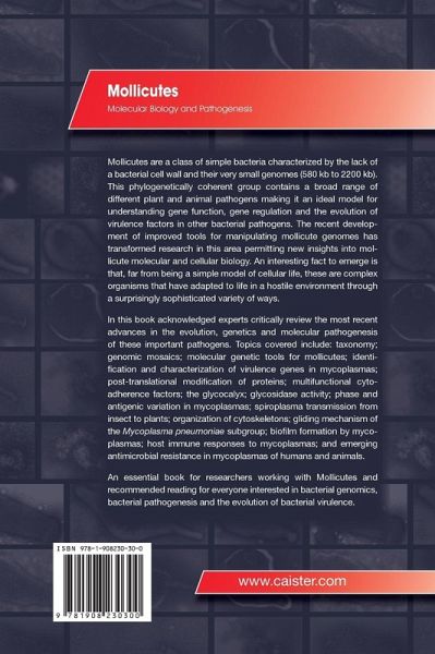 Mollicutes are a class of simple bacteria characterized by the lack of a bacterial cell wall and their very small genomes (580 kb to 2200 kb). This phylogenetically coherent group contains a broad range of different plant and animal pathogens making it an ideal model for understanding gene function, gene regulation and the evolution of virulence factors in other bacterial pathogens. The recent development of improved tools for manipulating mollicute genomes has transformed research in this area permitting new insights into mollicute molecular and cellular biology. An interesting fact to emerge is that, far from being a simple model of cellular life, these are complex organisms that have adapted to life in a hostile environment through a surprisingly sophisticated variety of ways. In this book acknowledged experts critically review the most recent advances in the evolution, genetics and molecular pathogenesis of these important pathogens. Topics covered include: taxonomy; genomic mosaics; molecular genetic tools for mollicutes; identification and characterisation of virulence genes in mycoplasmas; post-translational modification of proteins; multifunctional cytoadherence factors; the glycocalyx; glycosidase activity; phase and antigenic variation in mycoplasmas; spiroplasma transmission from insect to plants; cytoskeletons organization; gliding mechanism of the Mycoplasma pneumoniae subgroup; biofilm formation by mycoplasmas; host immune responses to mycoplasmas; and emerging antimicrobial resistance in mycoplasmas of humans and animals. An essential book for researchers working with mollicutes and recommended reading for everyone interested in bacterial genomics, bacterial pathogenesis and the evolution of bacterial virulence.