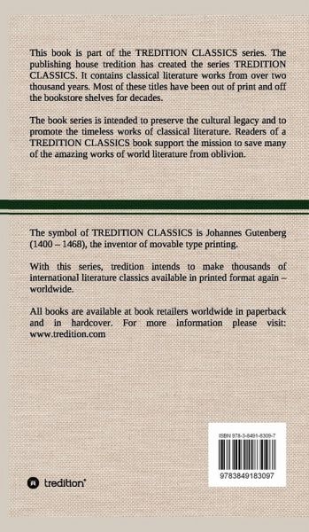 This book (hardcover) is part of the TREDITION CLASSICS. It contains classical literature works from over two thousand years. Most of these titles have been out of print and off the bookstore shelves for decades. The book series is intended to preserve the cultural legacy and to promote the timeless works of classical literature. Readers of a TREDITION CLASSICS book support the mission to save many of the amazing works of world literature from oblivion. With this series, tredition intends to make thousands of international literature classics available in printed format again worldwide.