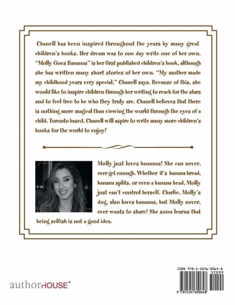 Molly just loves bananas! She can never, ever get enough. Whether it's banana bread, banana splits, or even a banana head, Molly just can't control herself. Charlie, Molly's dog, also loves bananas, but Molly never, ever wants to share! She soon learns that being selfish is not a good idea.