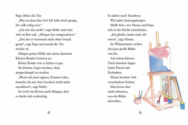Molly reicht's! Klar hat sie ihren kleinen Bruder Mingus lieb, aber immer noch ein Zimmer mit ihm teilen zu müssen, das nervt! Wissen Mama und Papa denn nicht, wie weh es tut, wenn man ständig auf Legosteine tritt? Molly will endlich ein eigenes Zimmer - mit gelben Wänden, einem Regal für schöne Dinge und einer bunten Lichterkette. Nur: Wie kann sie ihre Eltern davon überzeugen?