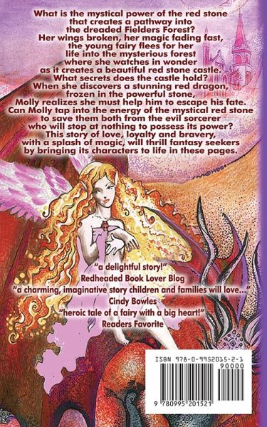 What is the mystical power of the red stone that creates a pathway into the dreaded Fielders Forest? Her wings broken, her magic fading, a young fairy flees for her life into the mysterious forest where she watches in wonder as it creates a beautiful red stone castle. What secrets does the castle hold? When she discovers a beautiful red dragon frozen in the powerful stone, Molly realizes she must help him to escape his fate. Can Molly tap into the energy of the mystical red stone to save them both from the evil sorcerer who will stop at nothing to possess its power? This story of love, loyalty, and bravery, with a splash of magic, will thrill fantasy seekers by bringing its characters to life. "heroic tale of a fairy with a big heart!"...Readers Favorite "a delightful story..." Redheaded Book Lover Blog "a charming, imaginative story children and families will love.." Cindy Bowles