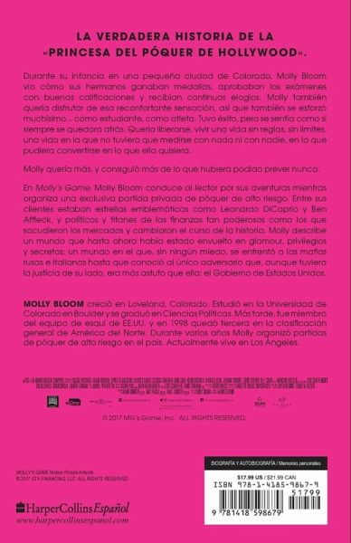 Todos querían participar pero pocos fueron invitados a jugar. Cientos de millones de dólares se ganaron y perdieron en su mesa. Este era el juego para aquellos que podían, celebridades, magnates de negocios y millonarios. Molly organizaba sus juegos en suites palaciegas con vistas hermosas y comodidades exquisitas. Viajaba en privado, cenaba en restaurantes exclusivos, se codeaba con los jefes de estudios de Hollywood, era cortejada por hombres atractivos y se enteraba de los mejores chismes del mundo, hasta que todo a su alrededor se derrumbó.