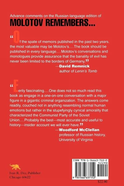 In conversations with the poet-biographer Felix Chuev, Molotov offers an incomparable view of the politics of Soviet society and the nature of Kremlin leadership under communism. Filled with startling insights and indelible portraits, the book is an historical source of the first order. OA mesmerizing and chilling chronicle.ONKirkus Reviews.