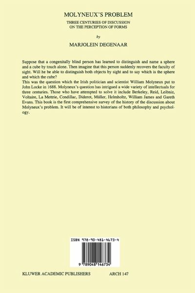 This was the question which the Irish politician and scientist William Molyneux posed in 1688 to John Locke. Molyneux's question has intrigued a wide variety of intellectuals for three centuries. Those who have attempted to solve it include Berkeley, Reid, Leibniz, Voltaire, La Mettrie, Condillac, Diderot, Müller, Helmholtz, William James and Gareth Evans. This book is the first comprehensive survey of the history of the discussion about Molyneux's problem. It will be of interest to historians of both philosophy and psychology.