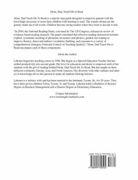 Mom, Dad Teach Me To Read is a step-by-step guide designed to empower parents with the knowledge necessary to assist their own children with learning to read. The sounds chosen are the genetic make-up of all words. Children become strong readers when they learn to decode words.