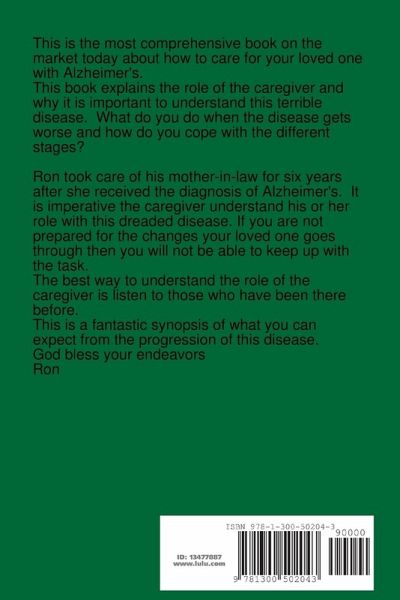 This book deals with Dementia/Alzheimer's. It is a debilitating progressive killer requiring constant care and continuous love from the caregiver. This book explains the stages of this dreaded disease and how the caregiver can cope with those changes.