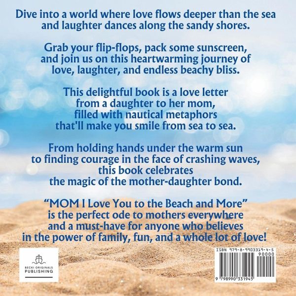 Dive into a world where love flows deeper than the sea and laughter dances along the sandy shores. Grab your flip-flops, pack some sunscreen, and join us on this heartwarming journey of love, laughter, and endless beachy bliss. This delightful book is a love letter from a daughter to her mom, filled with nautical metaphors that'll make you smile from sea to sea. From holding hands under the warm sun to finding courage in the face of crashing waves, this book celebrates the magic of the mother-daughter bond. "MOM, I LOVE YOU TO THE BEACH AND MORE" is the perfect ode to mothers everywhere and a must-have for anyone who believes in the power of family, fun, and a whole lot of love!