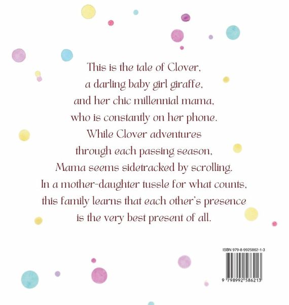 This is the tale of Clover, a darling baby girl giraffe, and her chic millennial mama, who is constantly on her phone. While Clover adventures through each passing season, Mama seems sidetracked by scrolling. In a mother-daughter tussle for what counts, this family learns that each other's presence is the very best present of all.