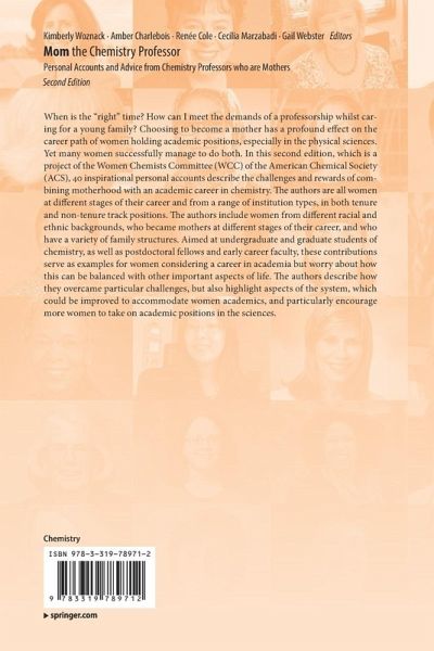 When is the "right" time? How can I meet the demands of a professorship whilst caring for a young family? Choosing to become a mother has a profound effect on the career path of women holding academic positions, especially in the physical sciences. Yet many women successfully manage to do both. In this second edition, which is a project of the Women Chemists Committee (WCC) of the American Chemical Society (ACS), 40 inspirational personal accounts describe the challenges and rewards of combining motherhood with an academic career in chemistry. The authors are all women at different stages of their career and from a range of institution types, in both tenure and non-tenure track positions. The authors include women from different racial and ethnic backgrounds, who became mothers at different stages of their career, and who have a variety of family structures. Aimed at undergraduate and graduate students of chemistry, as well as postdoctoral fellows and early career faculty, these contributions serve as examples for women considering a career in academia but worry about how this can be balanced with other important aspects of life. The authors describe how they overcame particular challenges, but also highlight aspects of the system, which could be improved to accommodate women academics, and particularly encourage more women to take on academic positions in the sciences.
