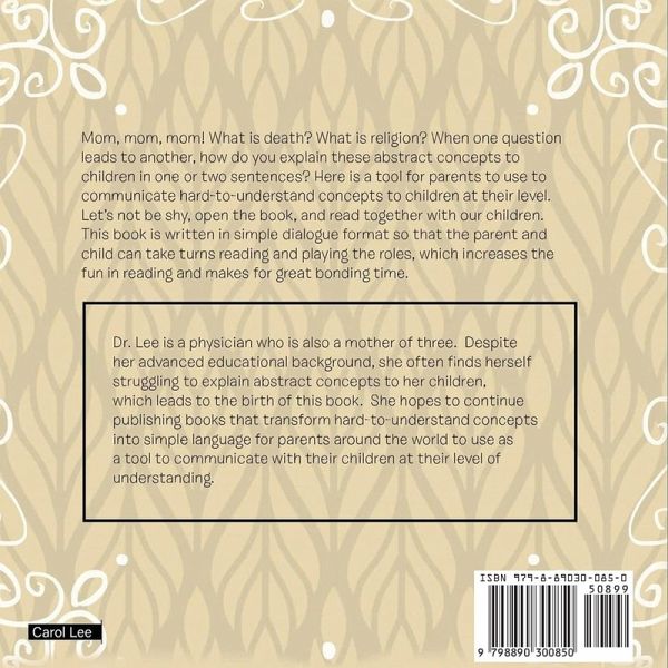 Mom, Mom, Mom! What is death? What is religion? When one question leads to another, how do you explain these abstract concepts to children in one or two sentences? Here is a tool for parents to use to communicate hard-to-understand concepts to children at their level. Lets not be shy. Open the book, and read together with your children. This book is written in simple dialogue format so that the parent and child can take turns reading and playing the roles, which increases the fun in reading and makes for great bonding time.