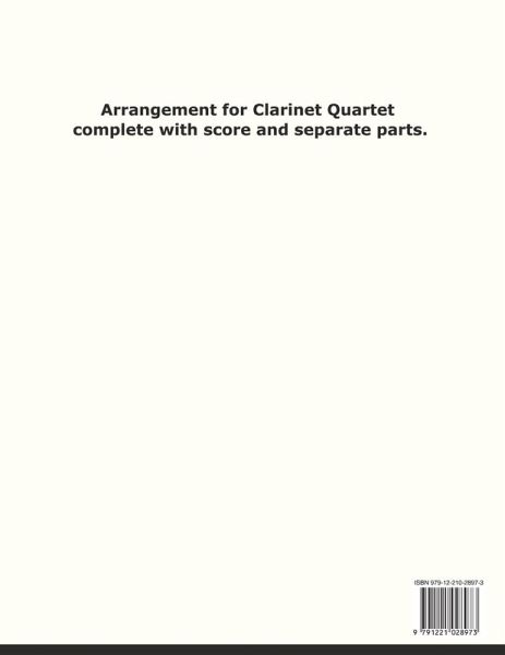 If you want to play a piece taken from the repertoire of one of the greatest Italian composers of cinema, read on! Often finding effective arrangements for clarinet quartets can be really difficult and complicated. Especially if you look for songs that can excite the audience and that are easy to listen to. This arrangement will give you the opportunity to enrich your repertoire, without neglecting professionalism! ¿¿¿¿complete score separate parts arrangement also valid for four Bb clarinets ¿¿¿Even if you tried to look for other professional tracks to enrich your repertoire without success, this arrangement will make the difference in your concert and will thrill the audience! ¿¿Buy this book right now!