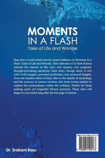 Step into a world where brevity meets brilliance in Moments in a Flash: Tales of Life and Wonder. This collection of 21 flash fictions extracts the essence of life, love, and mystery into poignant, thought-provoking narratives. Each story, though short, is rich with vivid imagery, powerful symbolism, and profound insights. From the timeless allure of fairy tales to the depths of mythology and the nuances of human emotion, this book invites readers to explore the extraordinary within the ordinary. Perfect for those seeking quick yet impactful literary journeys, these tales will linger in your mind long after the last page is turned.