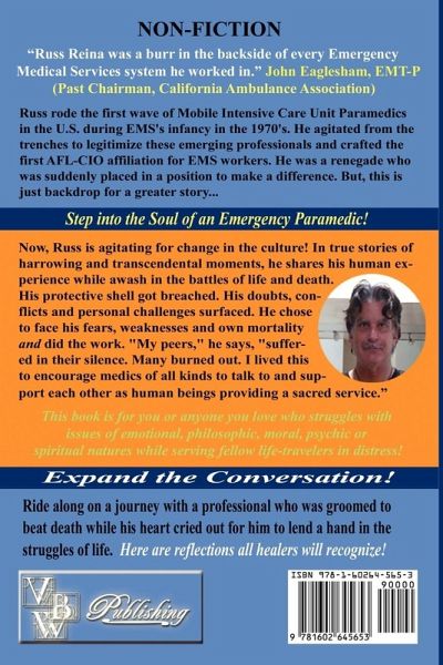 Underneath the lights and sirens beats the heart of a healer! The author rode the first wave of Mobile Intensive Care Unit Paramedics in the U.S. in the 1970's. He became a reflection of allopathic medicine's shift from hands-on patient "care" into a litigation-driven, technologically-oriented "delivery system". Like many of his peers, he morphed into a competent "Flesh Mechanic". Somewhere along the line he lost his soul. In an at times painfully honest memoir, the author describes moments at the mid-point of his career that rocked him to his very core. Through sometimes harrowing, sometimes transcendental experience, his defenses were chipped away; forcing him to come to grips with the human being he had become and could no longer continue to be. By facing his demons, however, he came to better understand his place in humankind's battle against death; now, he found himself lending a hand in the struggles of Life. This book is for you or anyone you love who is challenged by issues of emotional, philosophic, moral, psychic or spiritual natures while serving human beings in distress. Its purpose is to get medics of all stripes talking about their personal challenges as if they mattered!