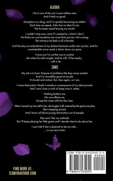 Alaska I lie to one of the city's most ruthless men. And it feels so good. Deception is a drug, and I'm quickly becoming an addict. Each time we speak, Zuko has no idea it's me. The lie tastes sweet leaving my mouth. I couldn't stop now, even if I wanted to-which I don't. He thinks our conversations are more than just sex. He's wrong. The intimacy he feels is all a facade. Until the day an embodiment of my darkest fantasies walks into my bar, and his unmistakable voice sends a shiver down my spine. It turns out I'm not the one in control. But when he calls tonight, and he will, I'll be ready... ... with a lie. Zuko My job is to hunt. Dispose of problems like they never existed. And I'm incredibly good at my job. It's brutal and violent. But, then again, so I am. I crave destruction. Death is merely a consequence of my dark pursuits. And I won't lose a wink of sleep over it, either. Nothing bothers me. No one affects me. Except the vixen with the lilac hair. When I reveal my true self to her, she laughs it off, enticed by the game we play. She's keeping secrets. And I know all about prying information out of people. She won't like my methods. But I'll keep playing her little game until I decide what to do about her. I can't tell if she is destined to be my wife... ... or my next victim.