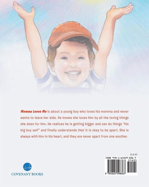 Momma Loves Me is about a young boy who loves his momma and never wants to leave her side. He knows she loves him by all the loving things she does for him. He realizes he is getting bigger and can do things "his big boy self" and finally understands that it is okay to be apart. She is always with him in his heart, and they are never apart from one another.