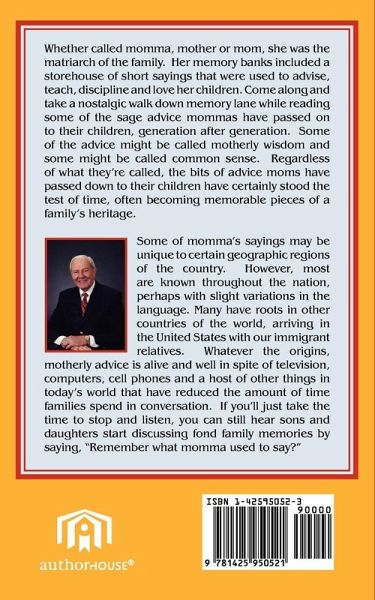 Whether called momma, mother or mom, she was the matriarch of the family. Her memory banks included a storehouse of short sayings that were used to advise, teach, discipline and love her children. Come along and take a nostalgic walk down memory lane while reading some of the sage advice mommas have passed on to their children, generation after generation. Some of the advice might be called motherly wisdom and some might be called common sense. Regardless of what they're called, the bits of advice moms have passed down to their children have certainly stood the test of time, often becoming memorable pieces of a family's heritage. Some of momma's sayings may be unique to certain geographic regions of the country. However, most are known throughout the nation, perhaps with slight variations in the language. Many have roots in other countries of the world, arriving in the United States with our immigrant relatives. Whatever the origins, motherly advice is alive and well in spite of television, computers, cell phones and a host of other things in today's world that have reduced the amount of time families spend in conversation. If you'll just take the time to stop and listen, you can still hear sons and daughters start discussing fond family memories by saying, "Remember what momma used to say?"