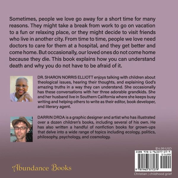 Sometimes, people we love go away for a short time for many reasons. They might take a break from work to go on vacation to a fun or relaxing place, or they might decide to visit friends who live in another city. From time to time, people we love need doctors to care for them at a hospital, and they get better and come home. But occasionally, our loved ones do not come home because they die. This book explains how you can understand death and why you do not have to be afraid of it.