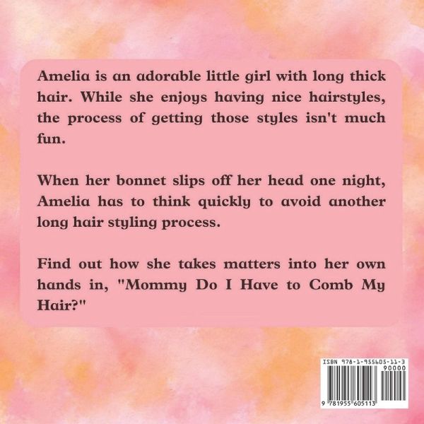 Amelia is an adorable little girl with long thick hair. While she enjoys having nice hairstyles, the process of getting those styles isn't much fun. When her bonnet slips off her head one night, Amelia has to think quickly to avoid another long hair styling process. Find out how she takes matters into her own hands in, "Mommy Do I Have to Comb My Hair?"
