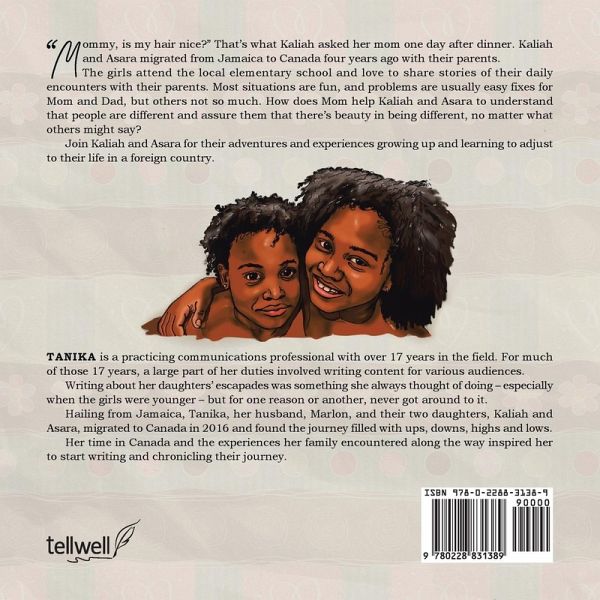 "Mommy, is my hair nice?" That's what Kaliah asked her mom one day after dinner. Kaliah and Asara migrated from Jamaica to Canada four years ago with their parents. The girls attend the local elementary school and love to share stories of their daily encounters with their parents. Most situations are fun, and problems are usually easy fixes for Mom and Dad, but others not so much. How does Mom help Kaliah and Asara to understand that people are different and assure them that there's beauty in being different, no matter what others might say? Join Kaliah and Asara for their adventures and experiences growing up and learning to adjust to their life in a foreign country.