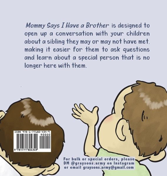 "Mommy Says I Have a Brother" is designed to open up a conversation with your children about a sibling they may or may not have met, making it easier for them to ask questions and learn about a special person that is no longer here with them.