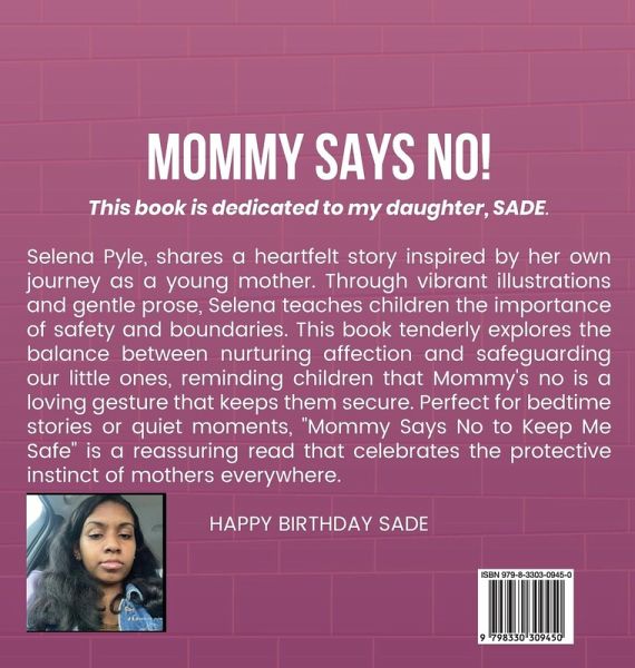 Shares a heartfelt story inspired by her own journey as a young mother. Through vibrant illustrations and gentle prose, Selena teaches children the importance of safety and boundaries. This book tenderly explores the balance between nurturing affection and safeguarding our little ones, reminding children that Mommy's no is a loving gesture that keeps them secure. Perfect for bedtime stories or quiet moments, "Mommy Says No to Keep Me Safe" is a reassuring read that celebrates the protective instinct of mothers everywhere.