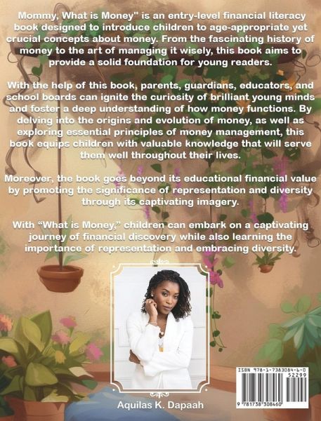 Mommy, What is Money" is an entry-level financial literacy book designed to introduce children to age-appropriate yet crucial concepts about money. From the fascinating history of money to the art of managing it wisely, this book aims to provide a solid foundation for young readers. With the help of this book, parents, guardians, educators, and school boards can ignite the curiosity of brilliant young minds and foster a deep understanding of how money functions. By delving into the origins and evolution of money, as well as exploring essential principles of money management, this book equips children with valuable knowledge that will serve them well throughout their lives. Moreover, the book goes beyond its educational, financial value by promoting the significance of representation and diversity through its captivating imagery. With "Mommy, What Is Money," children can embark on a captivating journey of financial discovery while also learning the importance of representation and embracing diversity.