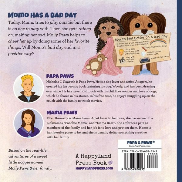 Everyone has bad days - even little puppies! When Momo can't find a playmate and gets caught in the rain, her spirits are as damp as her fur. But big sister Molly Paws knows just what to do to help turn those storm clouds into sunshine. This tender tale shows young readers that it's okay to feel down sometimes, and that family is there to help make things better. Through gentle storytelling and heartwarming illustrations, children will learn that even the gloomiest days can brighten up with a little love and care from those who matter most. Perfect for toddlers and preschoolers ages 0-5, this comforting story helps little ones understand their emotions and discover that bad days don't last forever - especially with family by your side. Each book in The Everyday Adventures of Papa & Paws® series features:Charming illustrations that capture every emotional moment Age-appropriate storytelling perfect for ages 0-5 Real-life situations that children instantly relate to Gentle life lessons woven naturally into each tale True stories that make the messages even more meaningful Opportunities for family bonding and discussion