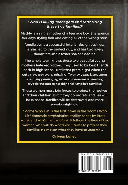 Lyla Bailey's summer was devastating. But her junior year of high school is going to be murder. The beautiful teen is physically and emotionally damaged from the car crash that killed her best friend and almost killed her. She's no longer interested in cheerleading, boys, or hanging out with her twin sister and their friends. A creepy new girl at school won't leave her alone. That is, until she goes missing during a school camping trip, and later turns up dead. Lyla and her friends investigate their classmate's death, but a mysterious stalker sends them cryptic messages which lure them into dangerous situations, each more terrifying than the next. To make things worse, Lyla's mom is acting really suspicious... like she's hiding something. Can Lyla and her friends stop the killer, or will they be the next victims? This is the first book in a 5-BOOK SERIES with JAW-DROPPING CLIFFHANGERS. Moms Who Lie is the first gripping novel in the totally addictive 5-book domestic psychological thriller series by Brett Monk and McKenna Langford.