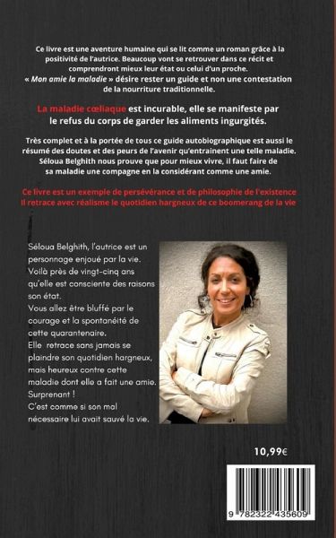 Ce livre retrace avec réalisme le quotidien de ce boomerang de l'existence qu'est la maladie coeliaque. La simplicité du langage sans fard nous entraîne dans une aventure contre une bousculade d'émotions. Vivre avec mille questions pour être comme les autres ! Une bataille permanente contre l'alimentation traditionnelle qui envahit nos narines et nos palais. Il a fallu à l'auteure trouver à chaque moment des solutions pour ne rien laisser paraitre et apprendre à exister ingérant les réflexions parfois vexantes et récurrentes. Mon amie la maladie désire rester un guide et non une contestation de la cuisine traditionnelle. Cette maladie coeliaque est incurable, elle se manifeste par le refus du corps de garder les aliments ingurgités. pour vivre avec elle, il faut se nourrir d'aliments dépourvus de gluten et de lactose. Voilà près de vingt-cinq ans que l'auteure est consciente de son état. Surprenant ! C'est comme si son mal lui avait sauvé la vie.