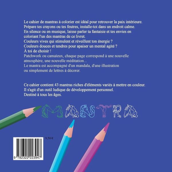 Prépare tes crayons ou tes feutres, installe-toi dans un endroit calme. En silence ou en musique, laisse parler ta fantaisie et tes envies en coloriant l'un des mantras de ce livret.