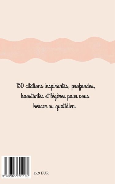 Mon carnet de citations 150 citations inspirantes, belles, boostantes et légères pour vous bercer au quotidien. La particularité par rapport à mes autres ouvrages, et que ce carnet de citations est « total black » pour rajouter un côté classe et profond. "Si vous croyez en vous quand personne d'autre ne le fait, vous avez déjà gagné.- Venus Williams""Ce n'est pas égoïste de vivre pour soi-même. Une personne qui n'a pas l'amour de soi ne peut donner de l'amour aux autres.- André Mathieu"Dimensions : 12x19cm