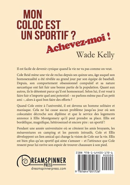 La série JOCK, tome 1 Il est facile de devenir cynique quand la vie ne va pas comme on veut. Cole Reid mène une vie de reclus depuis ses quinze ans, âge auquel son homosexualité a été révélée au grand jour par son équipe de baseball. Depuis, son comportement obsessionnel compulsif et sa nature sarcastique ont fait fuir une bonne partie de la population. Quant aux autres, ils le détestent parce qu’il est homosexuel. Selon lui, il est voué à faire fuir n’importe quel ami potentiel – ne parlons même pas d’un petit ami –, alors à quoi bon faire des efforts ? Quand Cole entre à l’université, il est devenu un homme solitaire et maniaque. Cela ne lui cause aucun problème jusqu’au jour où son colocataire décroche son diplôme et que le service des logements annonce à Ellis Montgomery qu’il peut prendre sa place. Ellis est bordélique, magnifique, hétérosexuel et encore pire : un sportif ! Pendant une année universitaire où se côtoient les amis bruyants, les mésaventures en camping et les parents intrusifs, Cole et Ellis développent un lien amical qui change la vision de Cole sur la vie. Ellis est bien plus qu’un sportif qui aime s’amuser – et l’attirance que Cole ressent pour lui ravive son espoir de trouver chaussure à son pied.