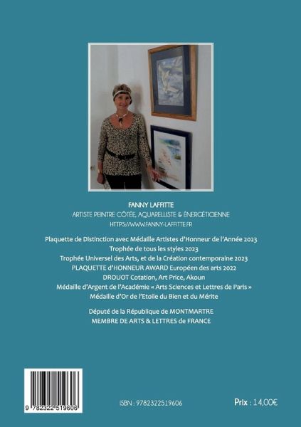 Un jour Fanny ouvrit les yeux sur la vie de lumière. Fanny plus qu'un surnom semble être d'une famille romaine, les FANNIA.Elle est née, dans la région des bastides au sud de Bordeaux. Elle a une enfance particulièrement traumatisante où les êtres de lumière sont intervenus sans qu'elle s'en doute. Ce n'est que 35 ans après qu'elle commencera à percevoir cette guidance par les messages des êtres de lumière, de différentes façons.Durant toute la longue période de son enfance et de son adolescence Fanny ignore où ses pas la conduiront tellement son chemin est difficile, mais elle l'a choisi !!Toujours guidée elle réussira ses études alors qu'elle éprouve le vif souhait de fixer un jour sur une toile ou du papier dessin, la nature qui l'environne et l'enchante à outrance.Après avoir gravi un escalier difficile, aujourd'hui Fanny est une émérite aquarelliste qui enchante le public au gré de ses Expositions, qui sont autant de reflets de ce que révèle son âme active de beauté et d'Amour Lumière.« Nature quand Fanny te chante par la couleur comme d'autres le font par le verbe, elle te maquille pour la fête qu'elle aimerait que tout le monde voit !! quel modèle plus vivant plus sensuel que la femme ? Mais la nature n'en est-elle pas une ? La plus belle, immortelle ! l'oeil de Fanny la déshabille pour la reproduire et la montrer aux yeux de tous !Nature, merci d'inspirer Fanny et à toi Fanny, Merci de la choisir comme ton modèle. »Belle route à vous, qui vous apprêtez à parcourir ce livre, que les énergies qui s'en dégagent puissent emplir votre coeur !