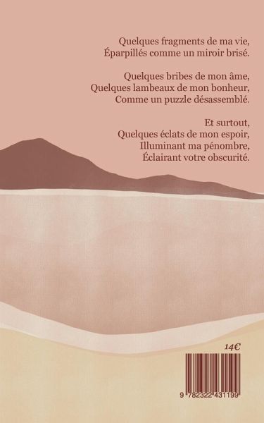 Quelques fragments de ma vie,ÉparpillésComme un miroir brisé.Quelques bribes de mon âme,Quelques lambeaux de mon bonheur,Comme un puzzle désassemblé.Et surtout,Quelques éclats de mon espoir,Illuminant ma pénombre,Éclairant votre obscurité.