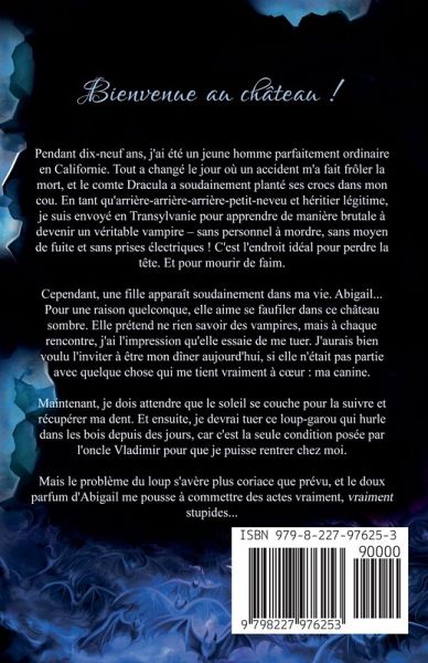 Pendant dix-neuf ans, j'ai été un jeune homme parfaitement ordinaire en Californie. Tout a changé le jour où un accident m'a fait frôler la mort, et le comte Dracula a soudainement planté ses crocs dans mon cou. En tant qu'arrière-arrière-arrière-petit-neveu et héritier légitime, je suis envoyé en Transylvanie pour apprendre de manière brutale à devenir un véritable vampire - sans personnel à mordre, sans moyen de fuite et sans prises électriques ! C'est l'endroit idéal pour perdre la tête. Et pour mourir de faim. Cependant, une fille apparaît soudainement dans ma vie. Abigail... Pour une raison quelconque, elle aime se faufiler dans ce château sombre. Elle prétend ne rien savoir des vampires, mais à chaque rencontre, j'ai l'impression qu'elle essaie de me tuer. J'aurais bien voulu l'inviter à être mon dîner aujourd'hui, si elle n'était pas partie avec quelque chose qui me tient vraiment à c¿ur : ma canine. Maintenant, je dois attendre que le soleil se couche pour la suivre et récupérer ma dent. Et ensuite, je devrai tuer ce loup-garou qui hurle dans les bois depuis des jours, car c'est la seule condition posée par l'oncle Vladimir pour que je puisse rentrer chez moi. Mais le problème du loup s'avère plus coriace que prévu, et le doux parfum d'Abigail me pousse à commettre des actes vraiment, vraiment stupides...