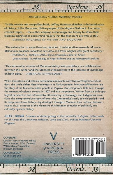 While Jamestown and colonial settlements dominate narratives of Virginia's earliest days, the land's oldest history belongs to its native people. Monacan Millennium tells the story of the Monacan Indian people of Virginia, stretching from 1000 A.D. through the moment of colonial contact in 1607 and into the present. Written from an anthropological perspective and informed by ethnohistory, archaeology, and indigenous tribal perspectives, this comprehensive study reframes the Chesapeake's early colonial period--and its deep precolonial history--by viewing it through a Monacan lens. Shifting focus to the Monacans, Hantman reveals a group whose ritual practices bespeak centuries of politically and culturally dynamic history. This insightful volume draws on archeology, English colonial archives, Spanish sources, and early cartography to put the Monacans back on the map. By examining representations of the tribe in colonial, postcolonial, and contemporary texts, the author fosters a dynamic, unfolding understanding of who the Monacan people were and are.