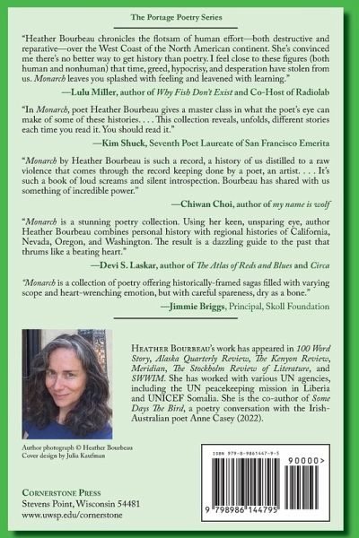 Exploring histories forgotten or often overlooked, Heather Bourbeau's Monarch is a powerful poetic memoir of the American West. Focused on the people and events that shaped California, Nevada, Oregon, and Washington, Bourbeau crafts a regional history that counteracts the simple narratives we are told and taught. Epic, personal, and compelling, Monarch impacts how we see each other and how we see our shared environment.