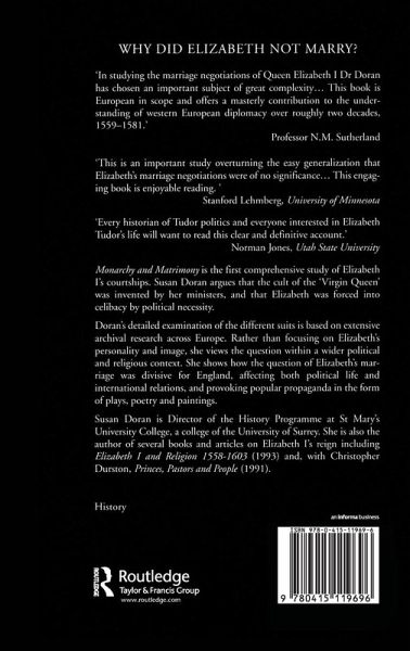 This detailed examination of the different suits is based on extensive archival research across Europe. Rather than focusing on Elizabeth's personality and image, she views the question within a wider political and religious context. She shows how the question of Elizabeth's marriage was divisive for England, affecting both political life and international relations, and provoking popular propaganda in the form of plays, poetry and paintings.