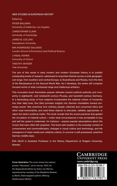 This innovative book illuminates popular attitudes toward political authority and monarchy in eighteenth- and nineteenth-century Prussia and twentieth-century Germany. In a fascinating study of how subjects incorporated the material culture of monarchy into their daily lives, Eva Giloi provides insights into German mentalities toward sovereign power. She examines how ordinary people collected and consumed relics and other royal memorabilia, and used these objects to articulate, validate, appropriate, or reject the state's political myths. The book reveals that the social practices that guided the circulation of material culture - under what circumstances it was acceptable to buy and sell the queen's underwear, for instance - expose popular assumptions about the Crown that were often left unspoken. The book sets loyalism in the everyday context of consumerism and commodification, changes in visual culture and technology, and the emergence of mass media and celebrity culture, to uncover a self-possessed, assertive German middle class.