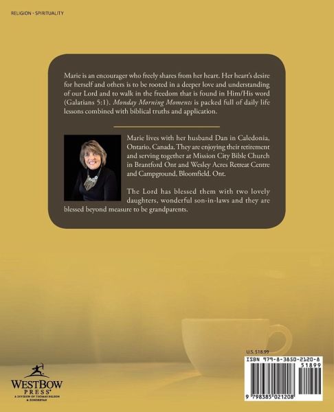 Marie is an encourager who freely shares from her heart. Her heart's desire for herself and others is to be rooted in a deeper love and understanding of our Lord and to walk in the freedom that is found in Him/His word (Galatians 5:1). Monday Morning Moments is packed full of daily life lessons combined with biblical truths and application.