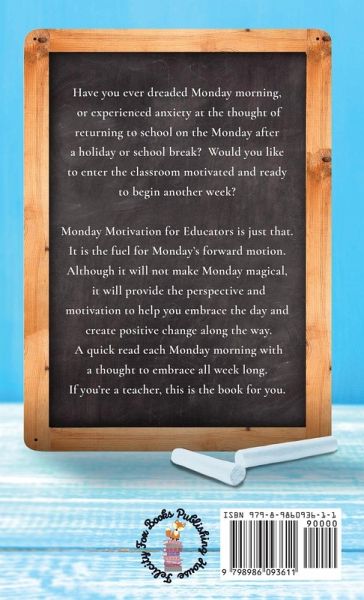 Teacher motivation to start your weeks in education. This book is sure to help inspire and give perspective for entering the classroom with passion and purpose. Smith provides beautiful images to give educators the inspiration they need to create successful classrooms and enrich their students' lives.