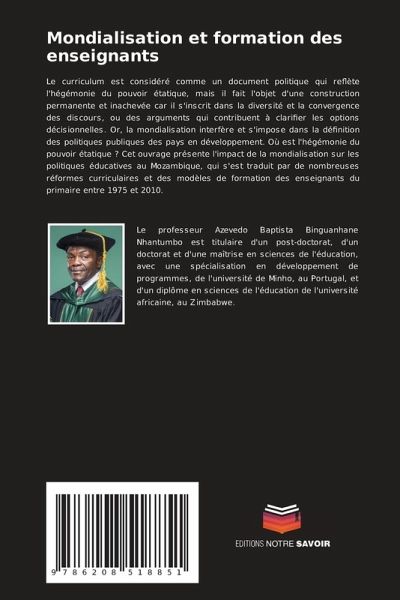 Le curriculum est considéré comme un document politique qui reflète l'hégémonie du pouvoir étatique, mais il fait l'objet d'une construction permanente et inachevée car il s'inscrit dans la diversité et la convergence des discours, ou des arguments qui contribuent à clarifier les options décisionnelles. Or, la mondialisation interfère et s'impose dans la définition des politiques publiques des pays en développement. Où est l'hégémonie du pouvoir étatique ? Cet ouvrage présente l'impact de la mondialisation sur les politiques éducatives au Mozambique, qui s'est traduit par de nombreuses réformes curriculaires et des modèles de formation des enseignants du primaire entre 1975 et 2010.