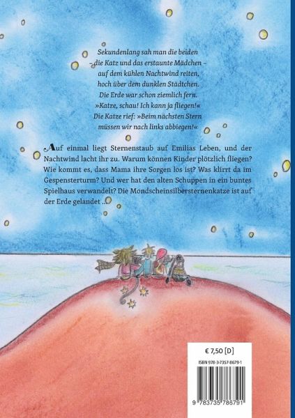 Sekundenlang sah man die beiden - die Katz und das erstaunte Mädchen - auf dem kühlen Nachtwind reiten, hoch über dem dunklen Städtchen. Die Erde war schon ziemlich fern.»Katze, schau! Ich kann ja fliegen!«Die Katze rief: »Beim nächsten Stern müssen wir nach links abbiegen!«Auf einmal liegt Sternenstaub auf Emilias Leben, und der Nachtwind lacht ihr zu. Warum können Kinder plötzlich fliegen? Wie kommt es, dass Mama ihre Sorgen los ist? Was klirrt da im Gespensterturm? Und wer hat den alten Schuppen in ein buntes Spielhaus verwandelt? Die Mondscheinsilbersternenkatze ist auf der Erde gelandet ...