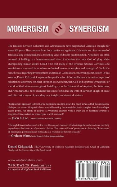 The tensions between Calvinism and Arminianism have perpetuated Christian thought for some 500 years. The concerns from both parties are legitimate. Calvinists are often accused of fatalism along with holding to a troubling view of double-predestination. Arminians are often accused of holding to a human-centered view of salvation that robs God of glory while championing human ability. Could it be that many of the tensions between Calvinists and Arminians are sourced in an often-overlooked issue--monergism and synergism? Could the same be said regarding Protestantism and Roman Catholicism concerning justification? In this volume, Daniel Kirkpatrick explores the specific roles of God and humans in various aspects of salvation to determine whether salvation is a work between God and a person (synergism) or a work of God alone (monergism). Building upon the framework of Aquinas, the Reformers, and Arminians, this book examines the issue of who does the work of salvation in light of cause and effect with hopes of providing new insights on historic doctrines. ""Kirkpatrick's approach to this thorny theological question clears the brush away so that the substantive dialogue can ensue. Kirkpatrick has a way with sorting the material so that a complex issue has multiple access points. His ability to address a systematic question with a lively use of historical sources is insightful. His assertion for monergism is well-sustained."" -- Jason K. Lee, Dean and Professor, Cedarville University ""Through this critical account of the core theological elements of soteriology, the author offers a carefully argued contribution to an often-heated debate. This book will be of great value to thinking Christians of all theological persuasion and especially as a resource for further research."" --Graham Watts, Senior Research Fellow, Spurgeon's College Daniel Kirkpatrick (PhD University of Wales) is Assistant Professor and Chair of Christian Studies at the University of the Southwest.