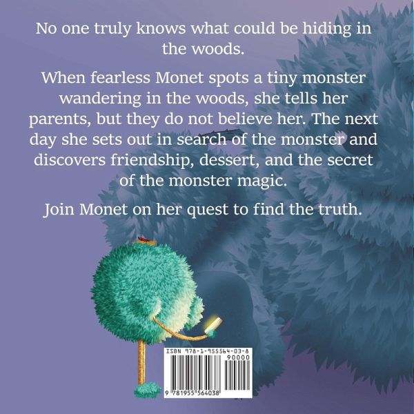 No one truly knows what could be hiding in the woods. When fearless Monet spots a tiny monster while wandering in the woods near her home, she tells her parents, but they do not believe her. The next day she sets out in search of the monster and discovers friendship, dessert, and the secret of the monster magic. Join Monet on her quest to find the truth. From writer/illustrator R.E. Lockett comes this charming tale of friendship, mystery, and magic. An illustrated rhyming adventure.